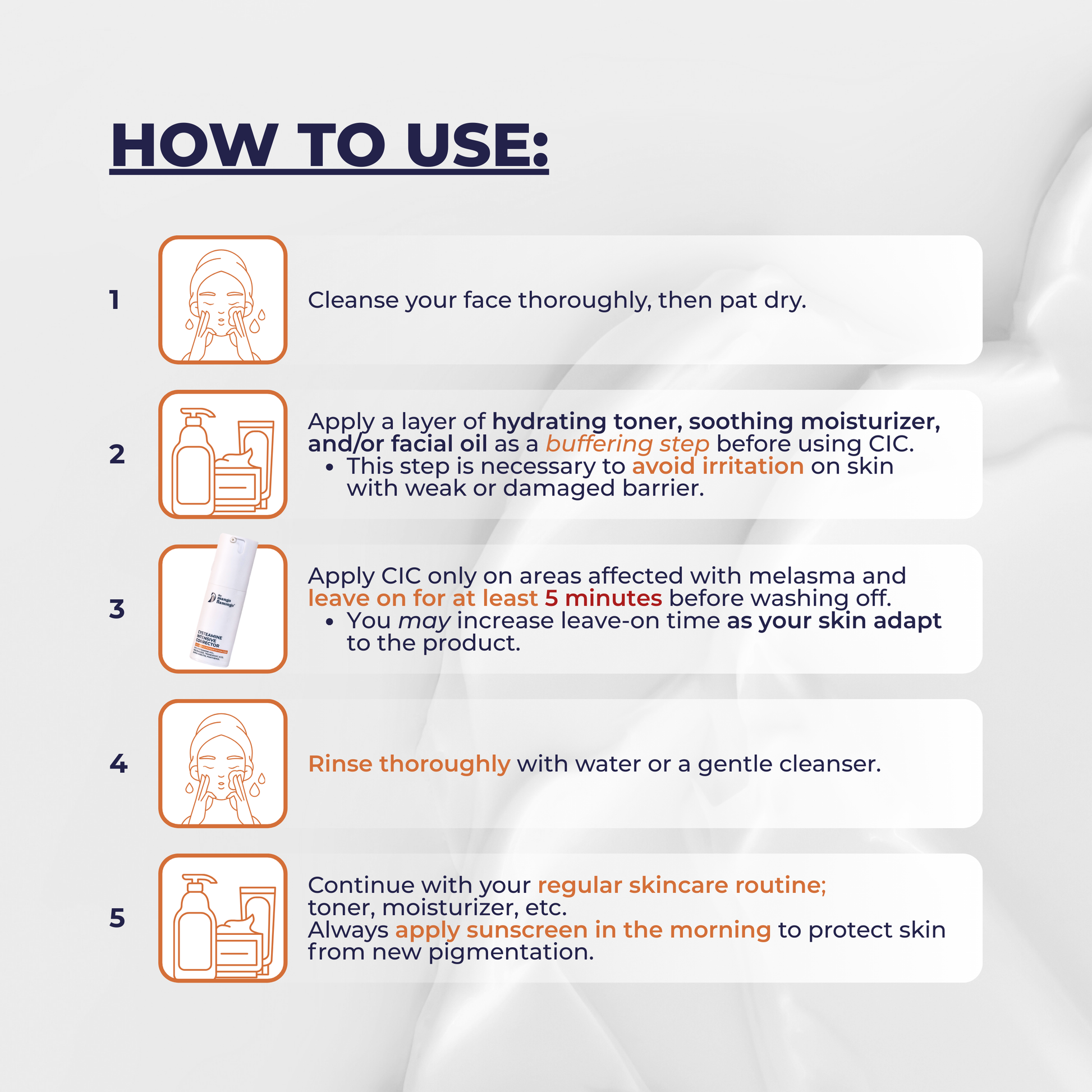 - Cysteamine HCL (5%) – Brightening active that helps minimize the appearance of discoloration for a more even-looking skin tone